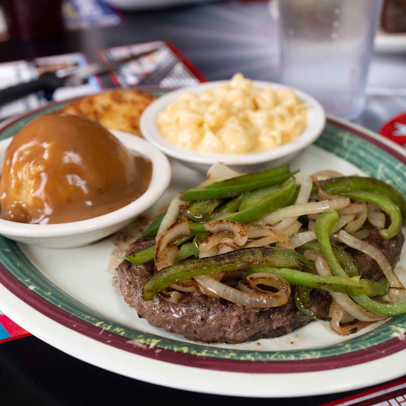 Got the hamburger steak and a build your own sampler with fried pickles cheese bites and jalapeño poppers with wings it was all amazing.